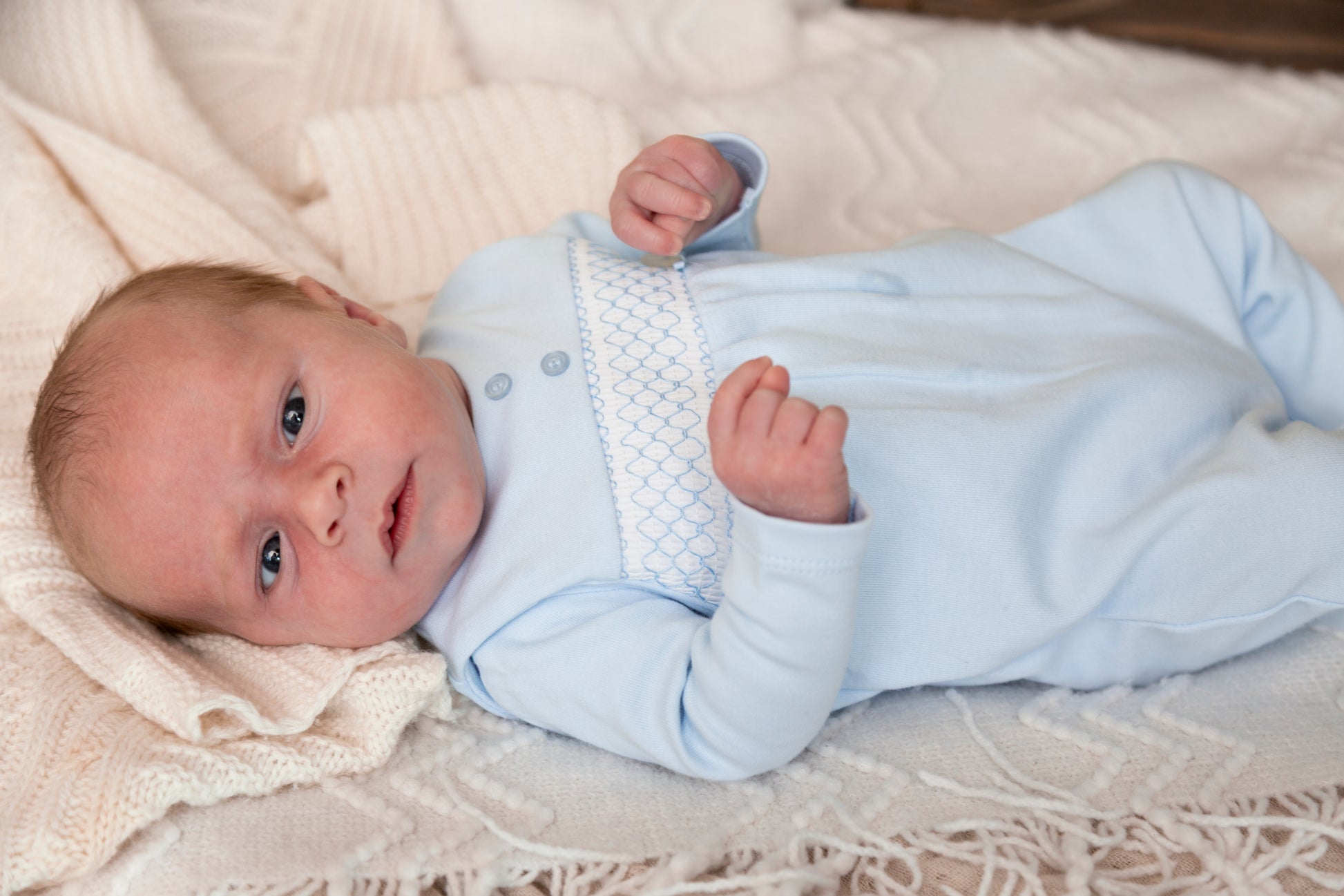 Introducing our Tiny Baby Collection, designed with utmost care for your precious little ones. Our blue bodysuit with dungaree ensemble has intricate smocking detail on the front and closed toe feet. It features popper fastening for easy dressing and fuss-free changes. Accompanied by a matching hat, this ensemble is specially crafted for premature darlings and is available in sizes 3-5lb up to newborn. Made from a blend of 85% cotton and 15% polyester, our garments ensure softness, comfort and durability for your little one. Our tiny baby collection is specially designed to keep little ones nice and snug from day one.