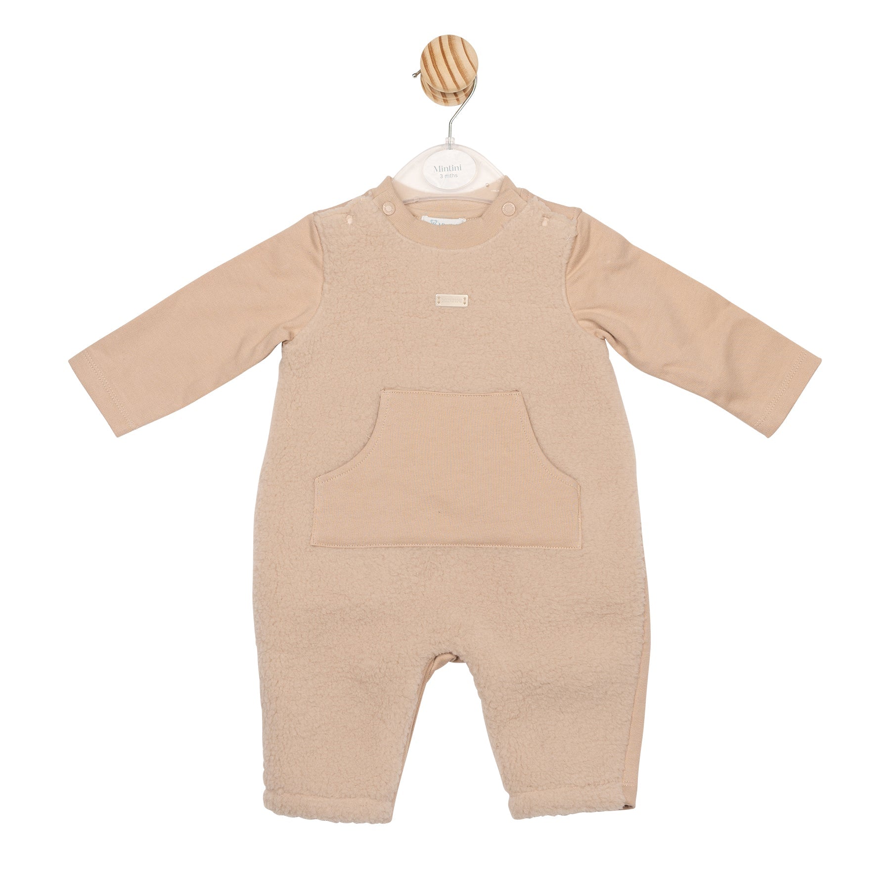 Keep your baby warm and cosy in our Beige Fleece Romper, thoughtfully crafted from 100% soft cotton. This adorable one-piece features a warm beige fleece front panel paired with a central kangaroo-style pocket for both charm and practicality. The sleeves and pocket trim are made from smooth, plain cotton, offering a gentle contrast and extra comfort. Perfect for everyday wear and cooler days, this romper blends warmth, softness, and simple style—ideal for snuggles and playtime alike