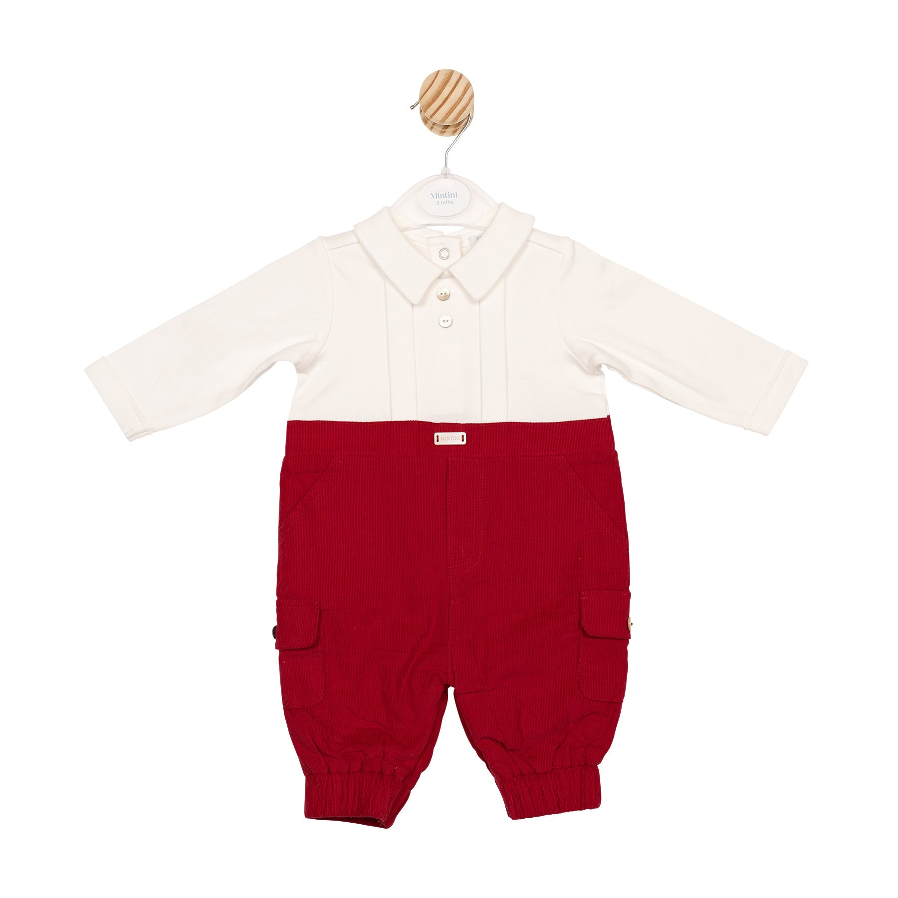 Our Ivory and Red Baby Cord Romper is a timeless, standout piece made from 100% cotton to ensure comfort and style for your little one. The ivory top features delicate pleats, a classic collar, and pearly buttons for an elegant touch. It's paired with a rich red corduroy bottom that adds bold texture and charm, finished with cargo-style pockets on each side for a playful, practical detail. Perfect for special occasions or stylish everyday wear, this romper combines softness, colour, and sophistication in a baby-friendly design.