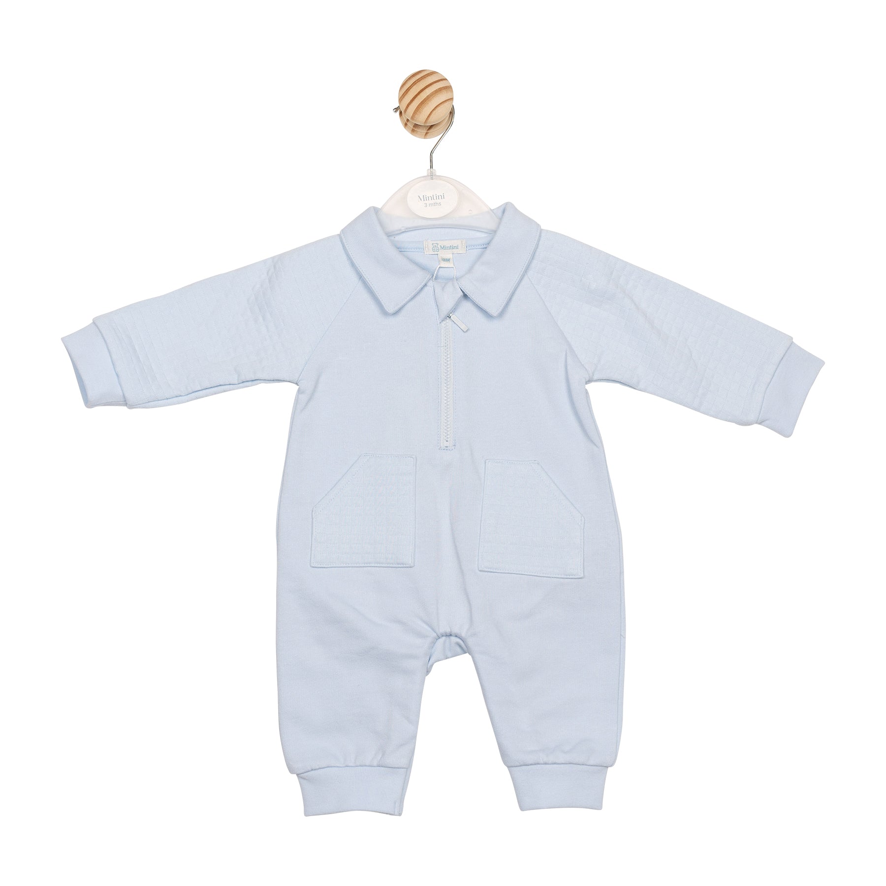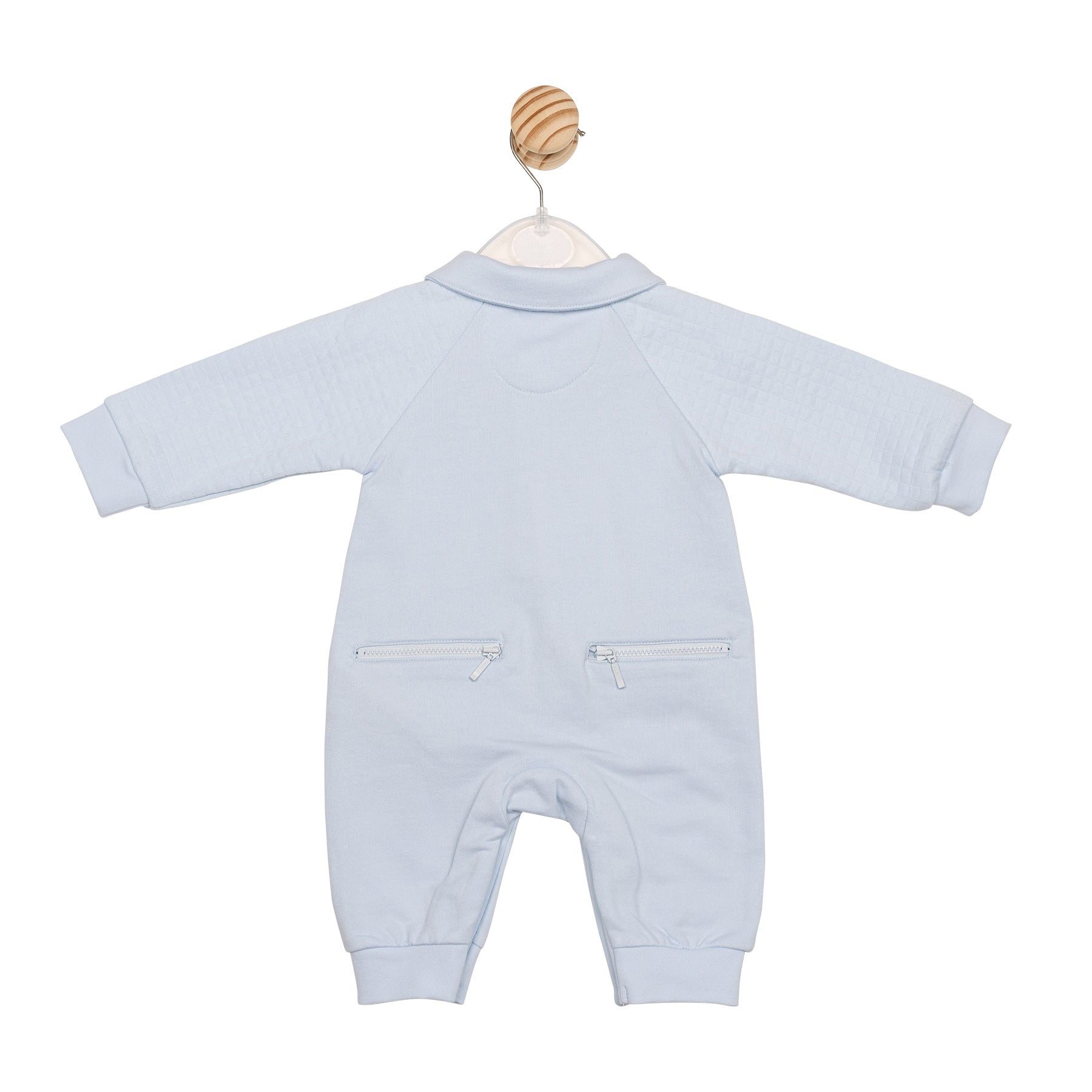 Keep your little one cosy and stylish with the Blue Square Jacquard Romper, part of our Square Jacquard Collection. Designed for babies aged 3 to 12 months, this charming romper features quilted square fabric on the sleeves and matching front pockets for added texture and warmth. Finished in a soft baby blue with a smart blue collar and practical quarter zip down the front, it’s perfect for everyday wear or special outings. A classic look with modern comfort.