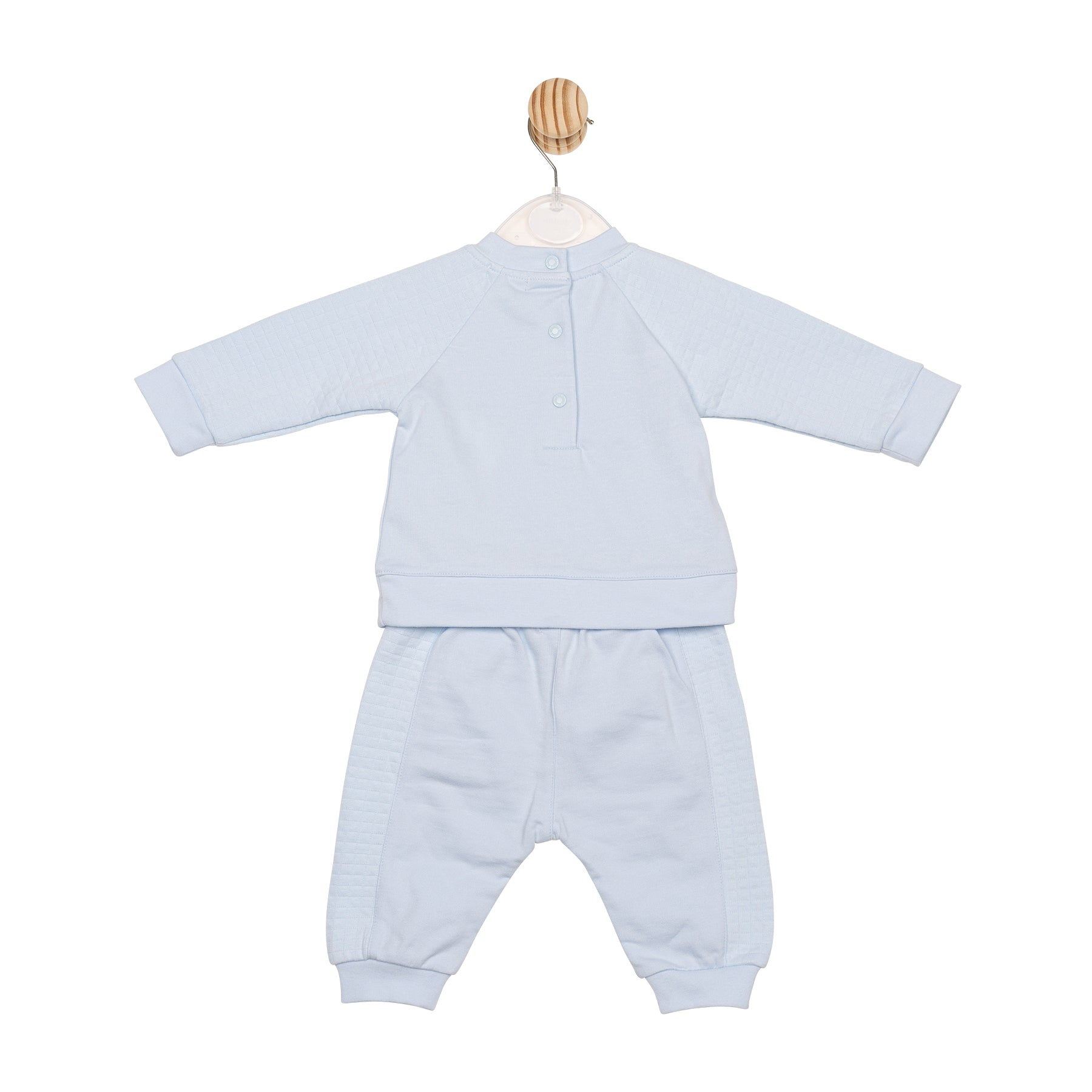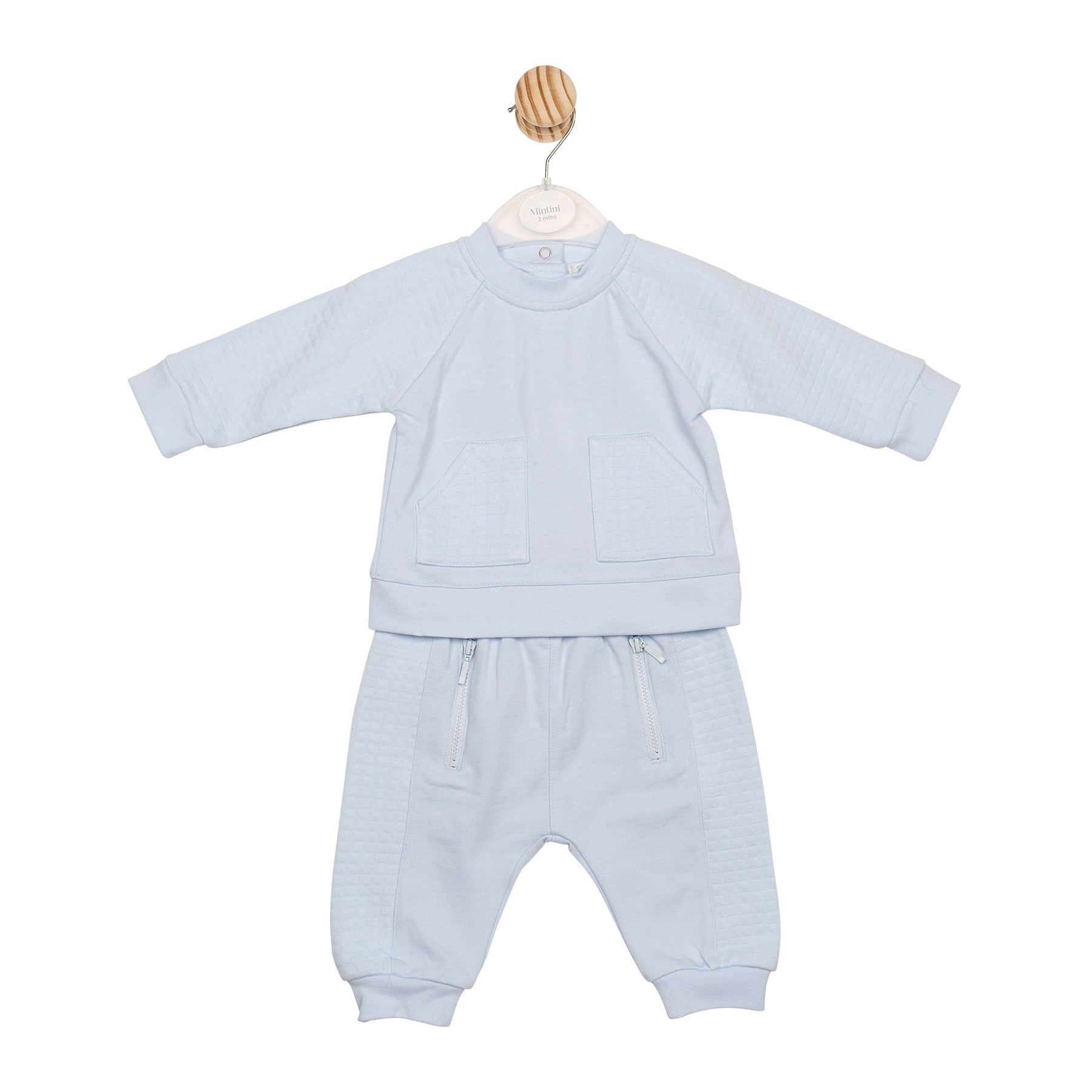 The Blue Square Jacquard Tracksuit is a stylish two-piece set designed for comfort and charm. The crewneck top features quilted square jacquard detailing on the sleeves and two front pockets, adding a touch of texture to the classic design. Paired with matching baby blue cuffed joggers, which feature the same quilted square material down the sides and two zip pockets on the front, this set is perfect for everyday wear. Part of our Square Jacquard Collection, it’s cosy, practical, and effortlessly smart.