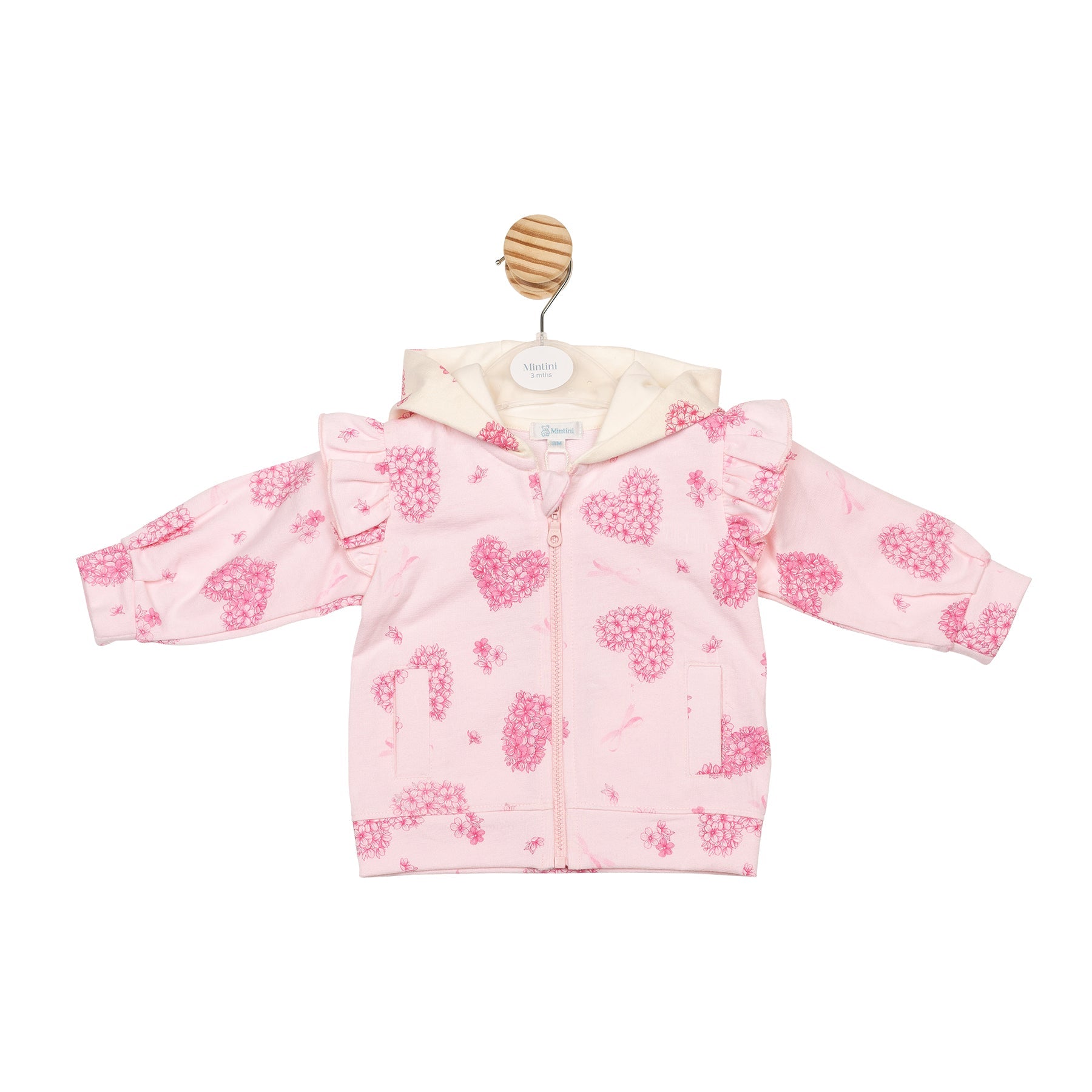 The Heart Print Hoodie is a cosy and playful piece designed to match perfectly with the rest of the Heart Print collection. Made from soft cotton, it features a pastel pink body and sleeves with an all-over heart-shaped floral print. The cream hood adds a gentle contrast, while frill detailing on the shoulder seams brings an extra touch of charm. Perfect for layering, this hoodie blends comfort and style for everyday wear.