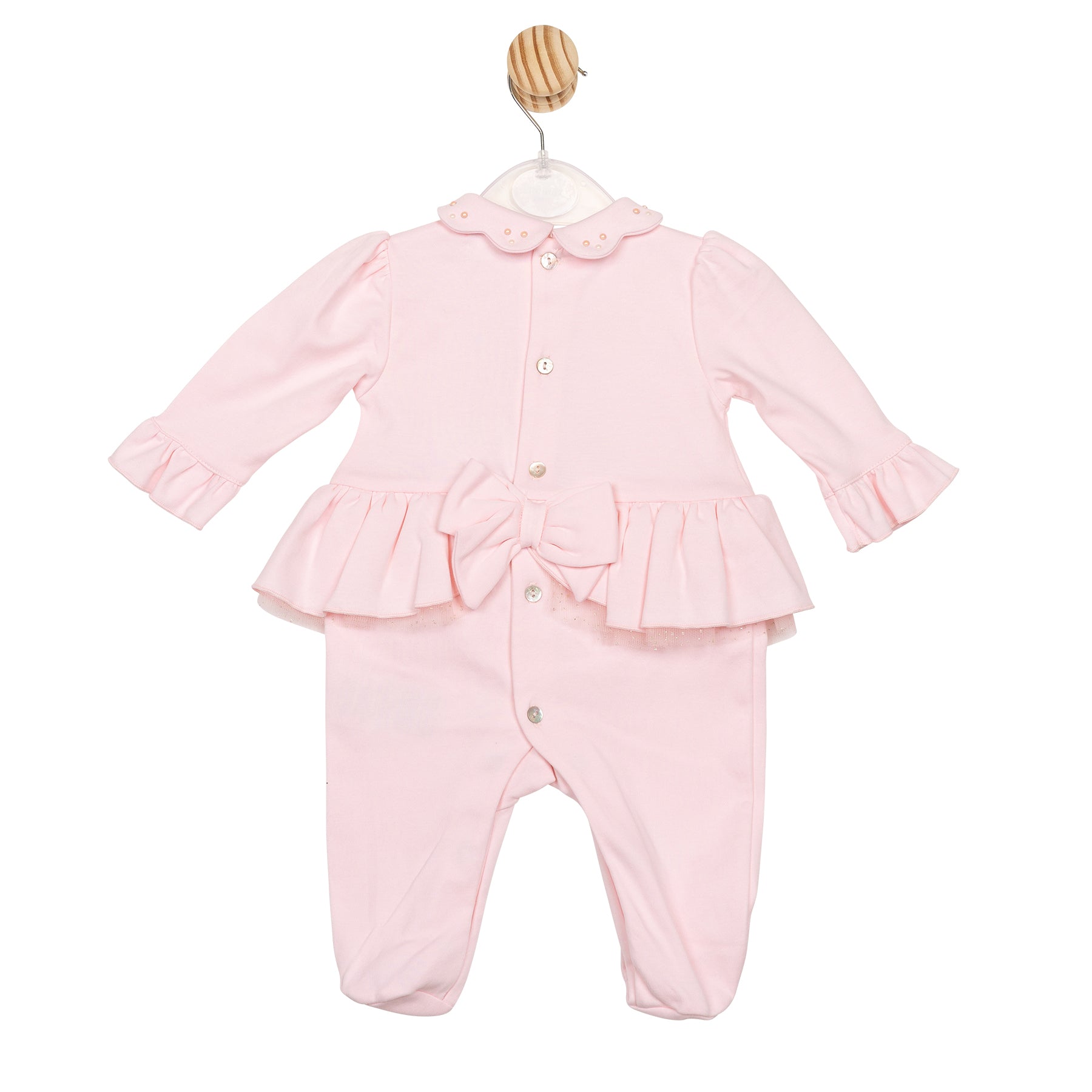 The Ballet Bow Babygrow is a delicate and graceful piece for little ones aged 1 to 6 months. Made from 100% cotton in a soft baby pink, it features frilly sleeves, a scalloped hem accented with tiny pearls, and a glittery bow graphic on the chest. The waistline is sweetly detailed with a ruffled cotton overlay and soft tulle frill beneath, adding a tutu-inspired touch. Perfect for special moments or simply looking lovely every day.