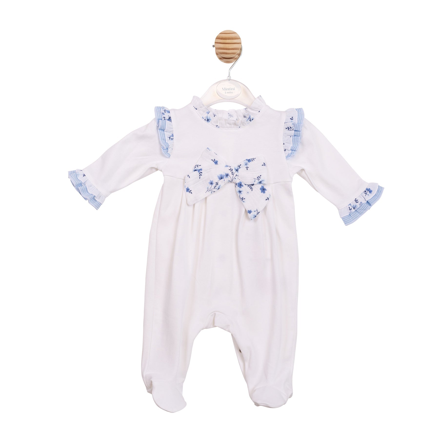 The White and Blue Floral Gingham Babygrow is a fresh and playful all-in-one. The crisp white base is complemented by soft blue floral gingham accents, with a frill collar adding a delicate, charming touch. Soft and comfortable, it’s designed to move with little ones while maintaining a polished, stylish finish. Available in 1 month, 3 months and 6 months.