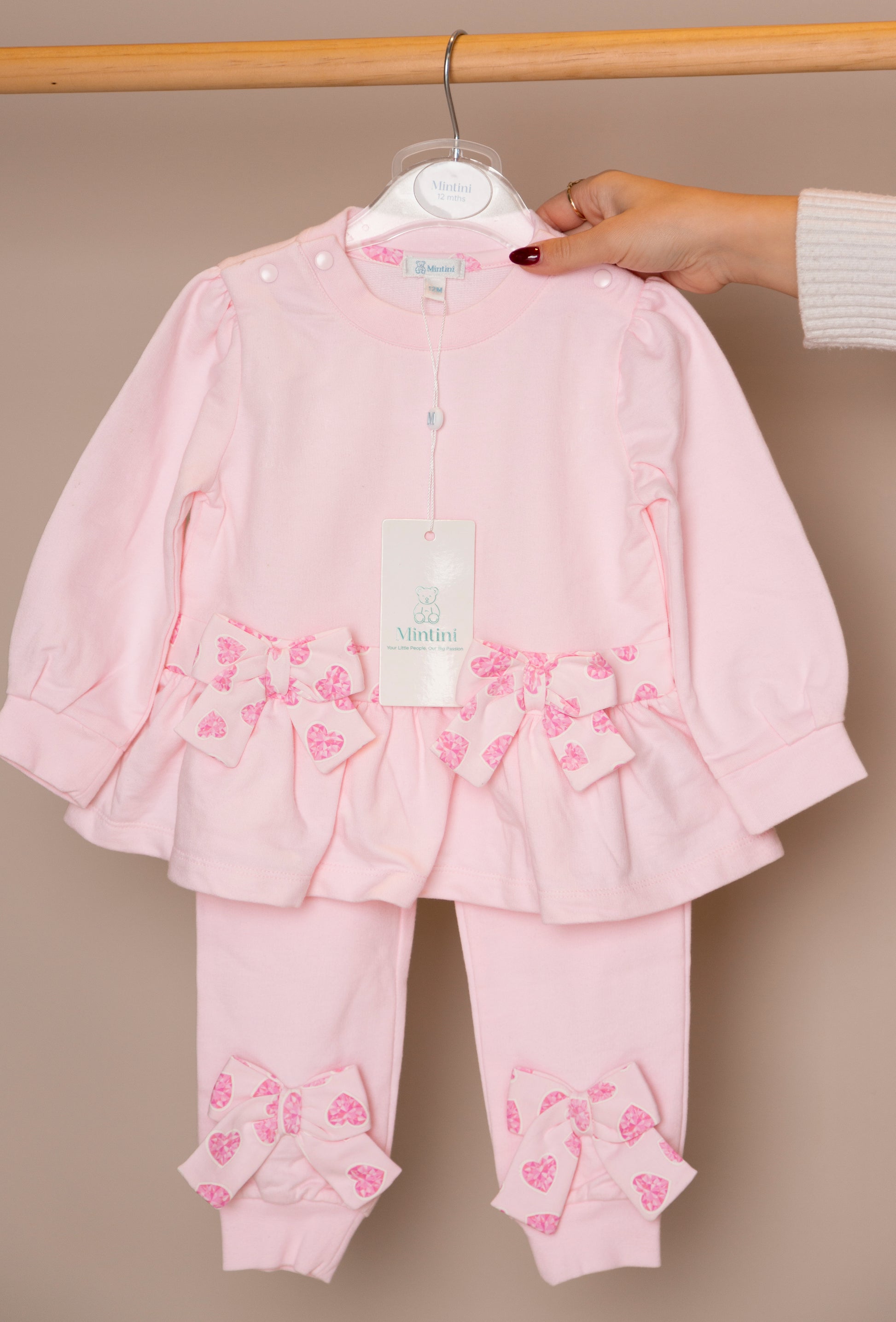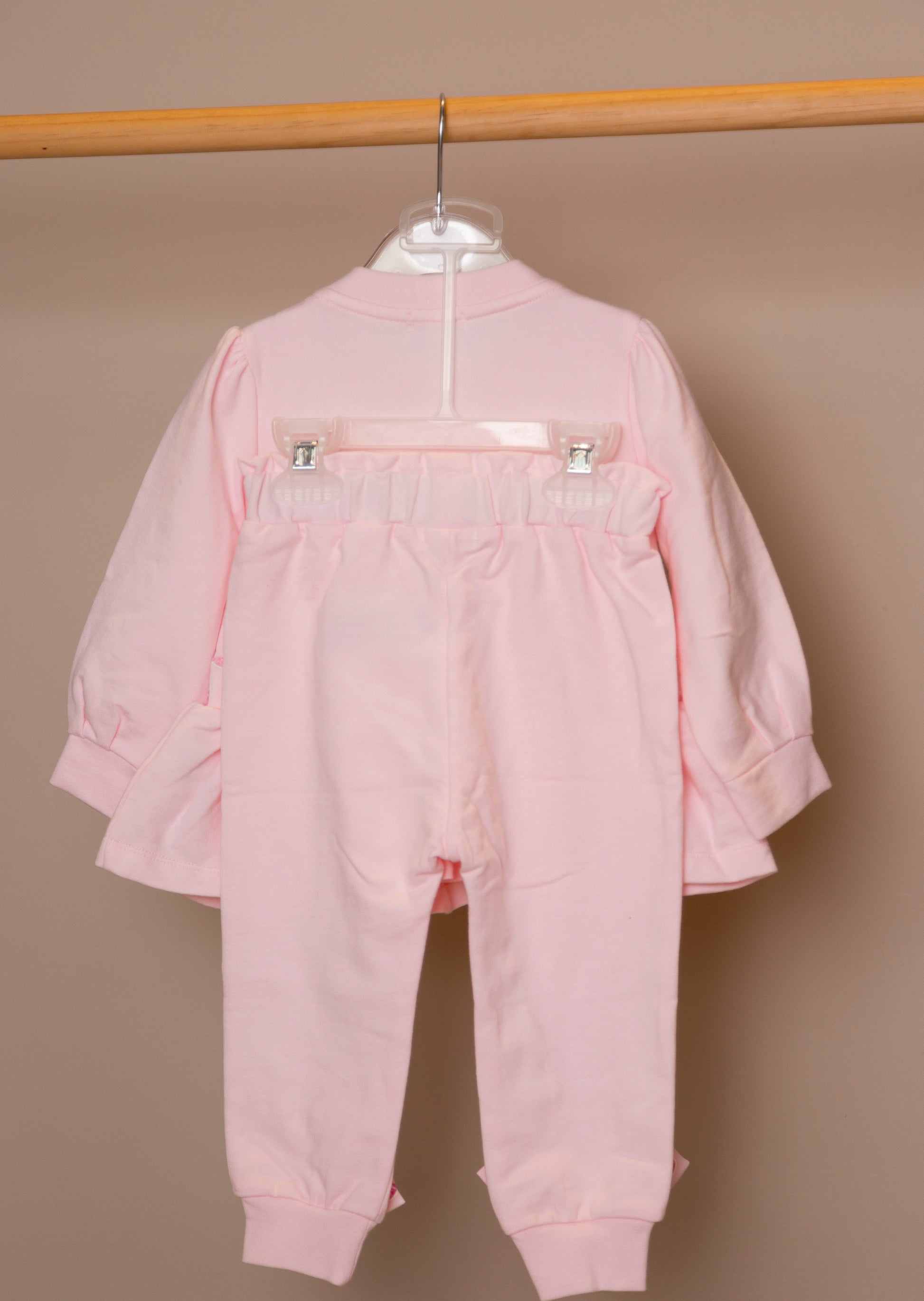The Pink Bow Frill Tracksuit is a beautifully soft set designed for comfort with a touch of sweetness. Made from 100% cotton, this two-piece outfit features a long-sleeved top with delicate frill detailing and charming bow accents, paired with matching joggers for a cosy, comfortable fit. Gentle on delicate skin and perfect for everyday wear, it’s ideal for playdates, lounging or days out. Available in sizes 12 months to 5 years.